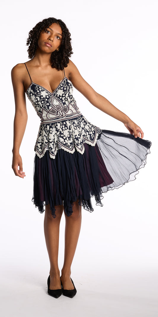 Eavis and Brown 1980s Navy Beaded Silk Chiffon Dress