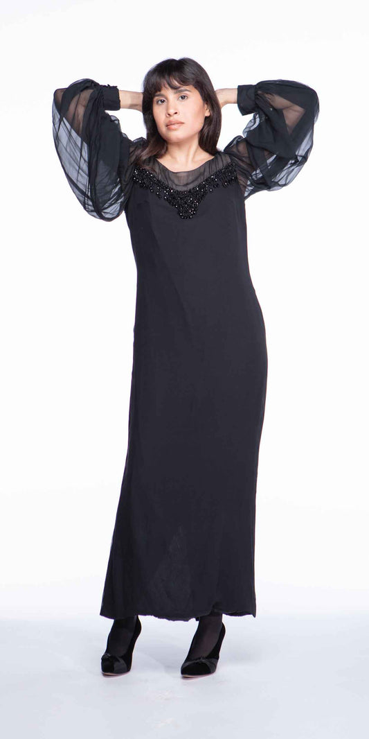 Chas A. Stevens 1960s Black Beaded Dress