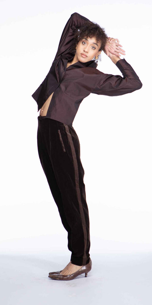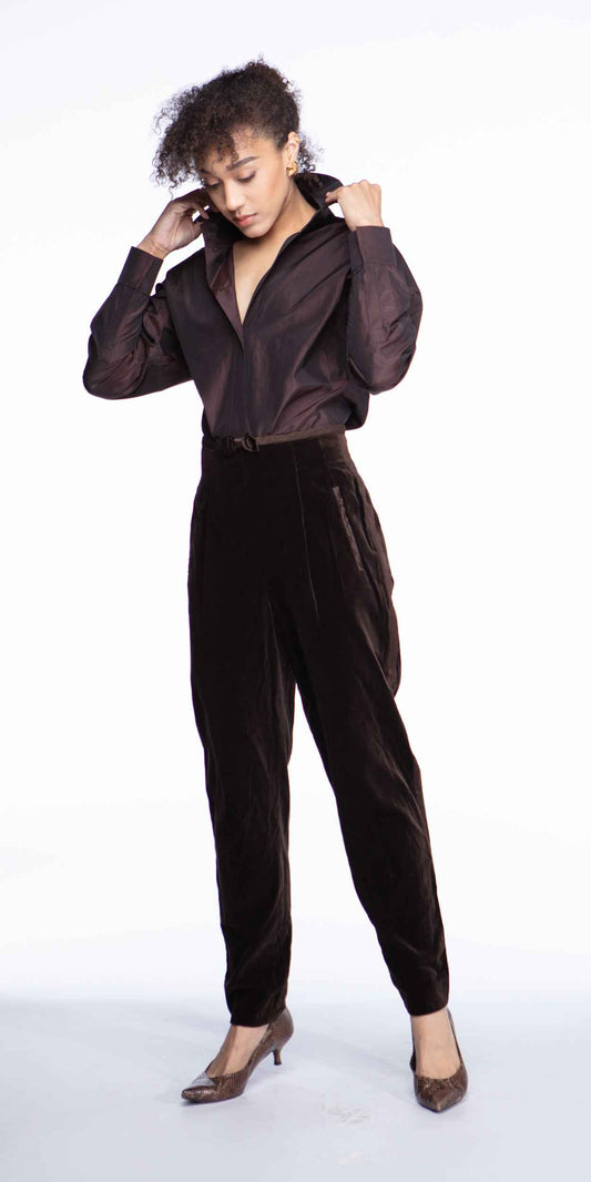 Escada Couture 1980s Chocolate Velvet Tuxedo Pants