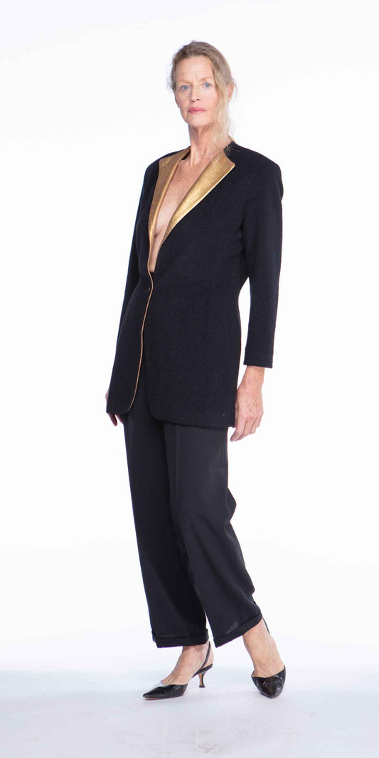 Donna Karan 1980s Black Wool Gold Lapel Blazer
