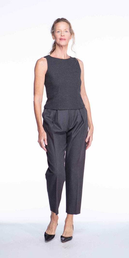 Yves Saint Laurent 1990s Charcoal Inverted Pleat Carrot Pants