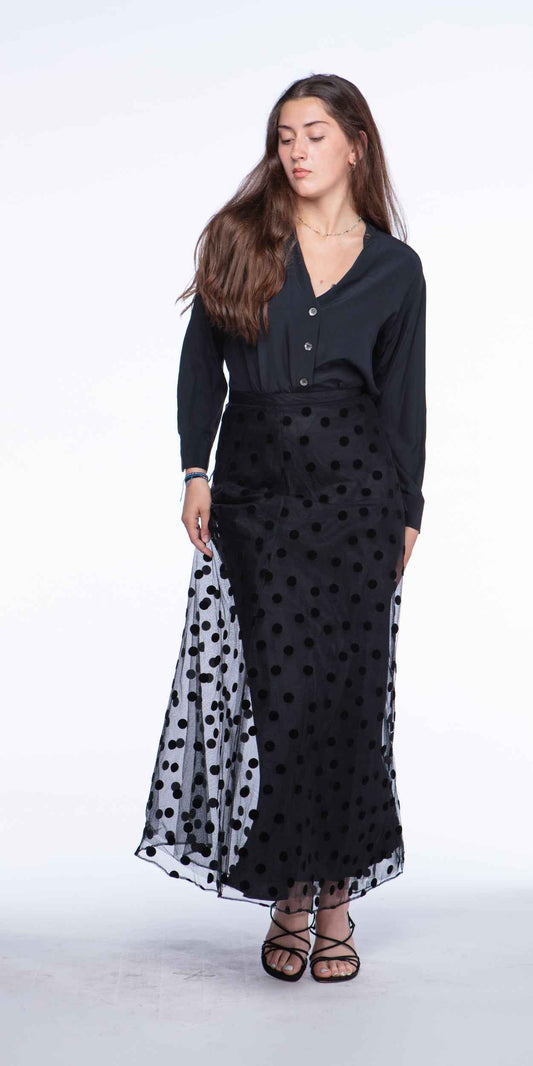 Chetta B 1990s Black Tulle Polka Dot Skirt