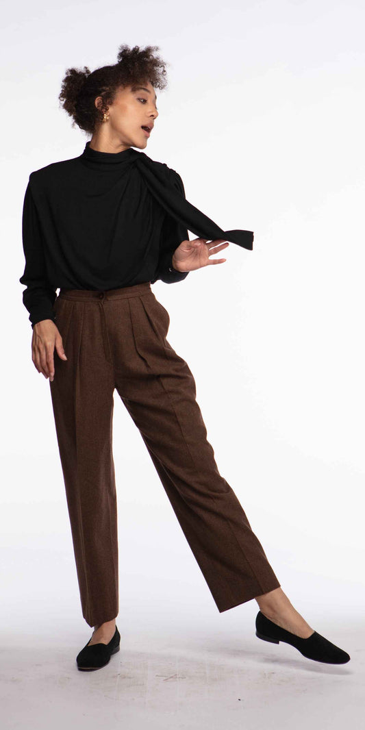 Emanuel Ungaro 1980s Heather Brown Wool Pleated Trouser Pants