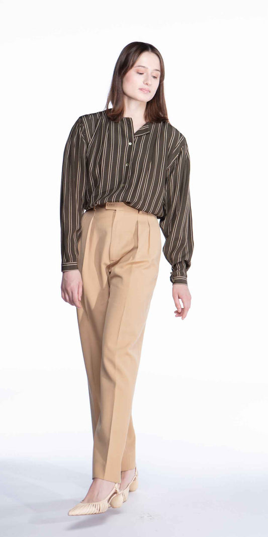 Yves Saint Laurent 1980s Khaki Wool Pleated Trousers