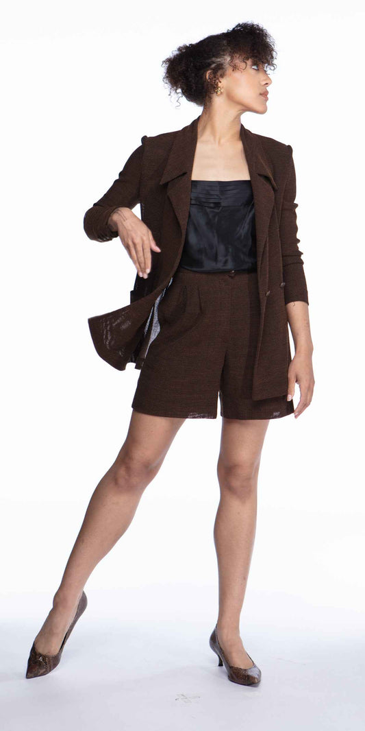 Chanel 1990s Chocolate Bouclé Shorts Suit