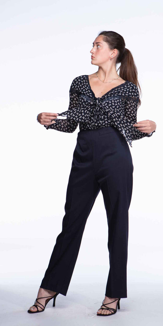 Valentino 1980s Navy Chiffon Bow-Printed Blouse