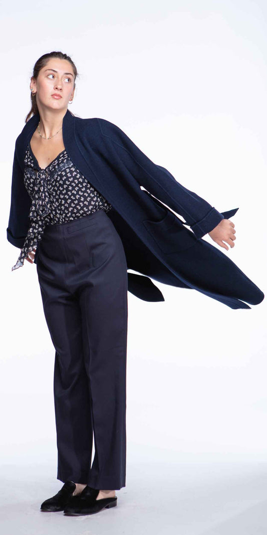 Valentino 1970s-1980s Navy Wool Wrap Coat