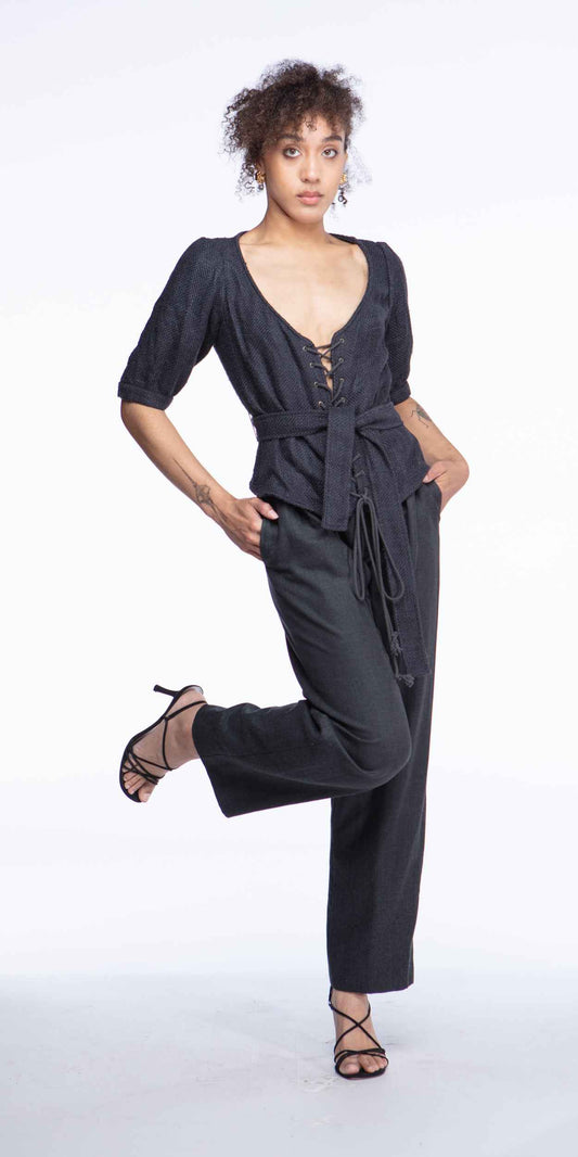 Yves Saint Laurent 1990s Charcoal Pleated Wool Trousers
