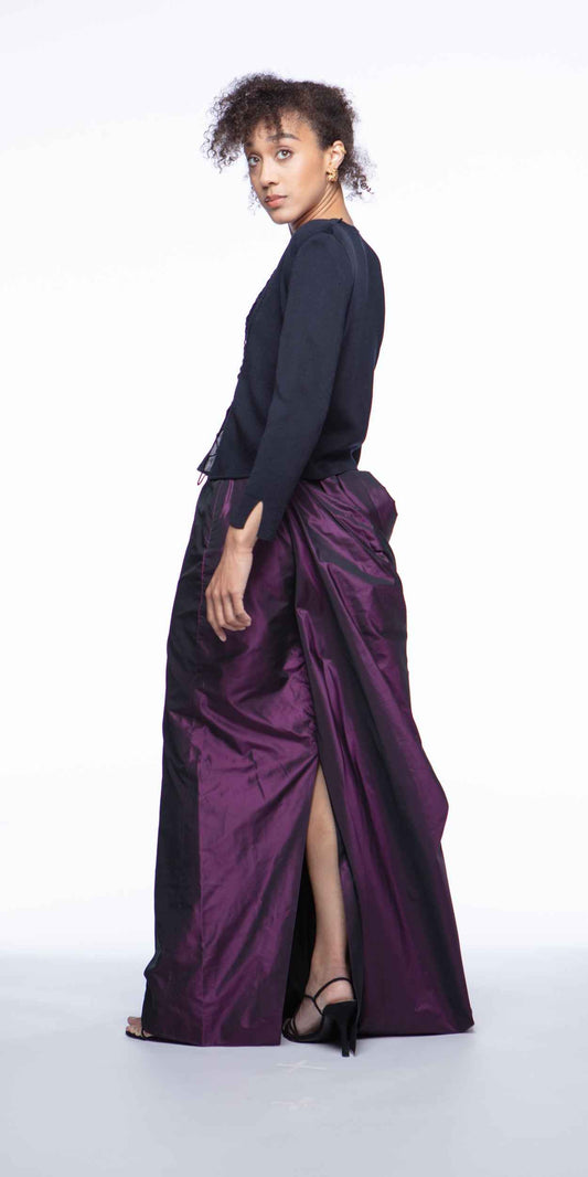 Escada Couture 1990s Eggplant Lamé Formal Skirt With Train
