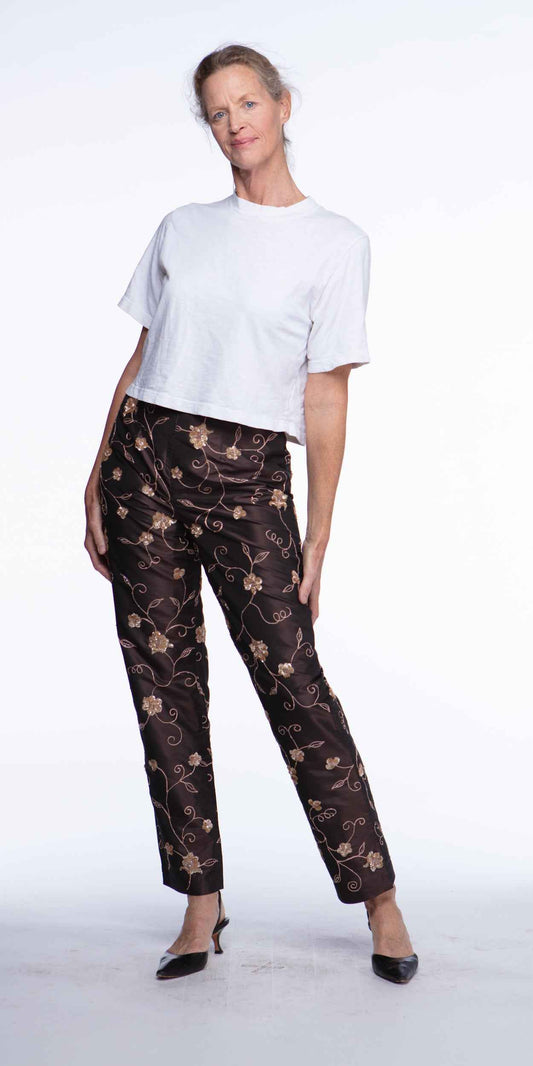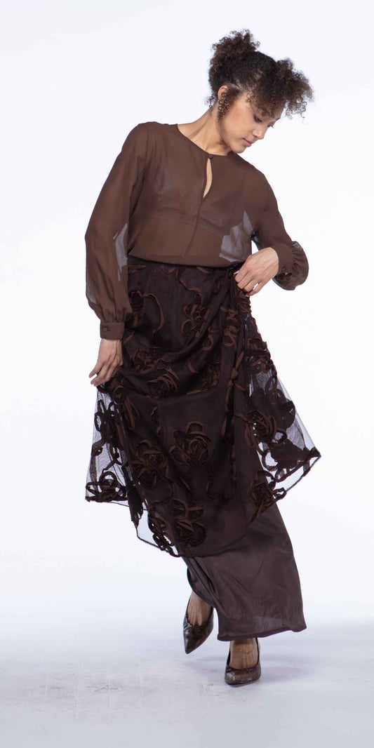 Chetta B 1990s Chocolate Tulle skirt with Floral Trim