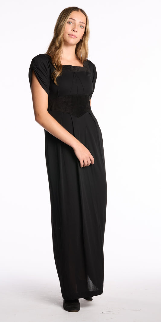 Jean Muir 1980s Square Neck Suede Detailed Dress