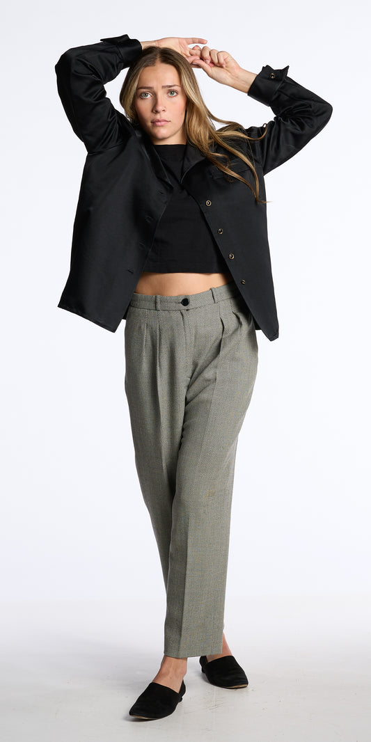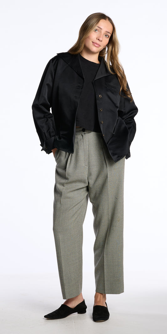 Yves Saint Laurent 1980s Black Silk Satin Cropped Jacket