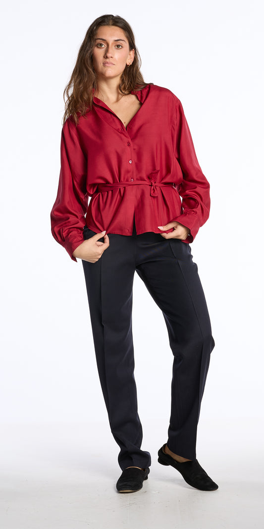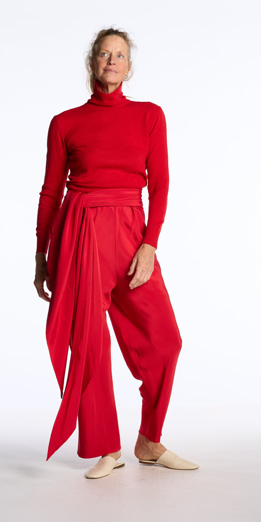 Halston Spring 1977 Cherry Silk Blend Pants With Triangular Sash