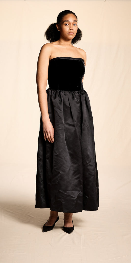 Bill Blass 1980s Velvet and Silk Satin Strapless Gown