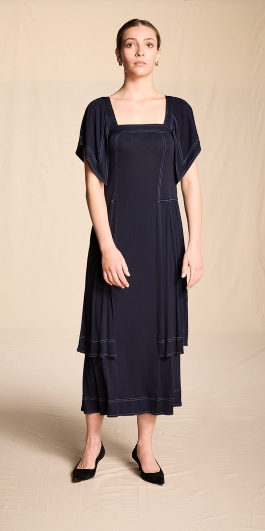 Jean Muir 1970s-1980s Navy Rayon Sailor Dress