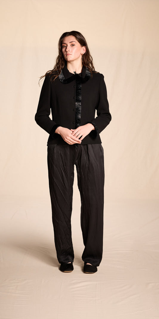 Bill Blass Spring/Summer 2000 Black Raffia Trimmed Jacket