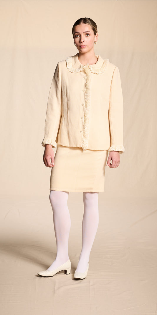 Bill Blass Spring/Summer 2000 Cream Raffia and Yarn Trimmed Skirt Suit