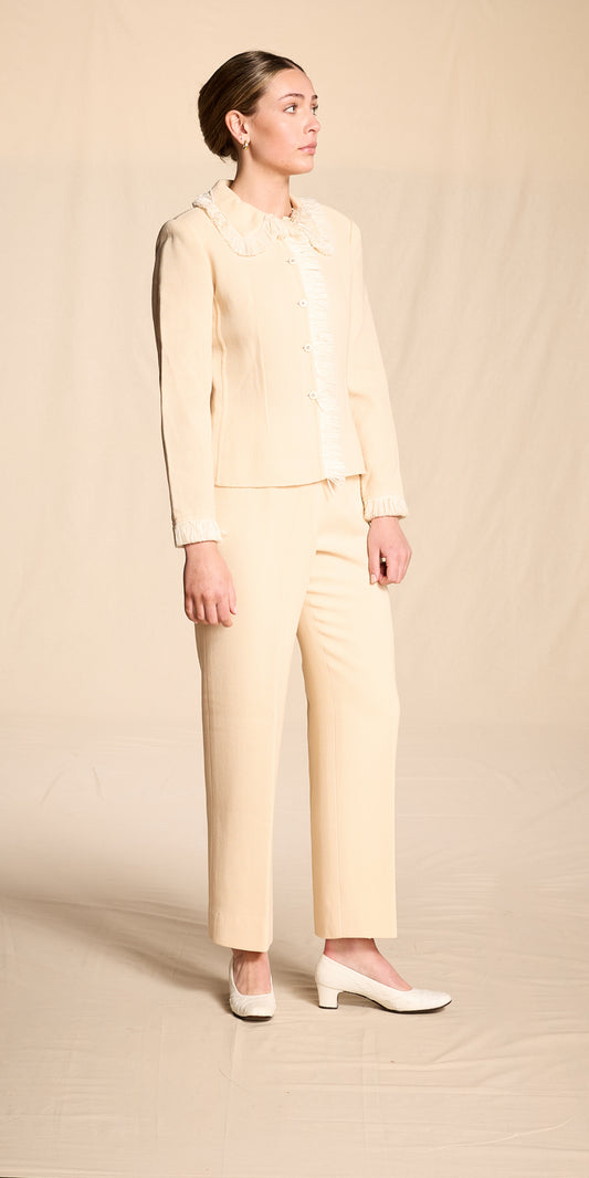 Bill Blass Spring/Summer 2000 Cream Crepe Raffia Trimmed Pantsuit