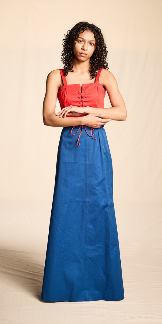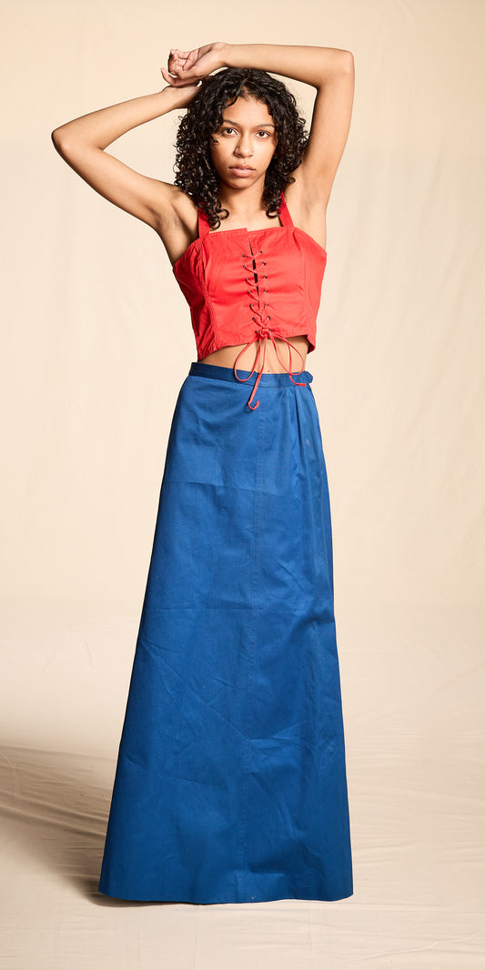 Yves Saint Laurent 1970s Cobalt Cotton Twill Skirt