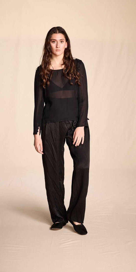 Bill Blass 1980s-1990s Black Silk Chiffon Sheer Top