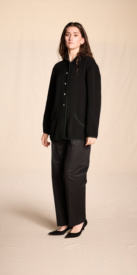 Geoffrey Beene 1990s Black Woven Jacket with Emerald Contrast Trim