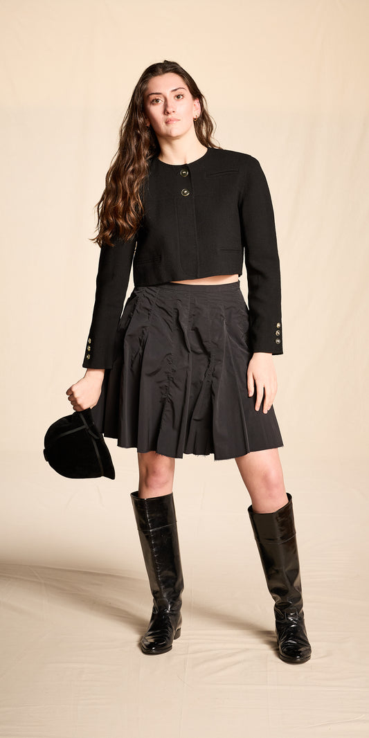 Bill Blass 1980s Black Crepe Cropped Jacket