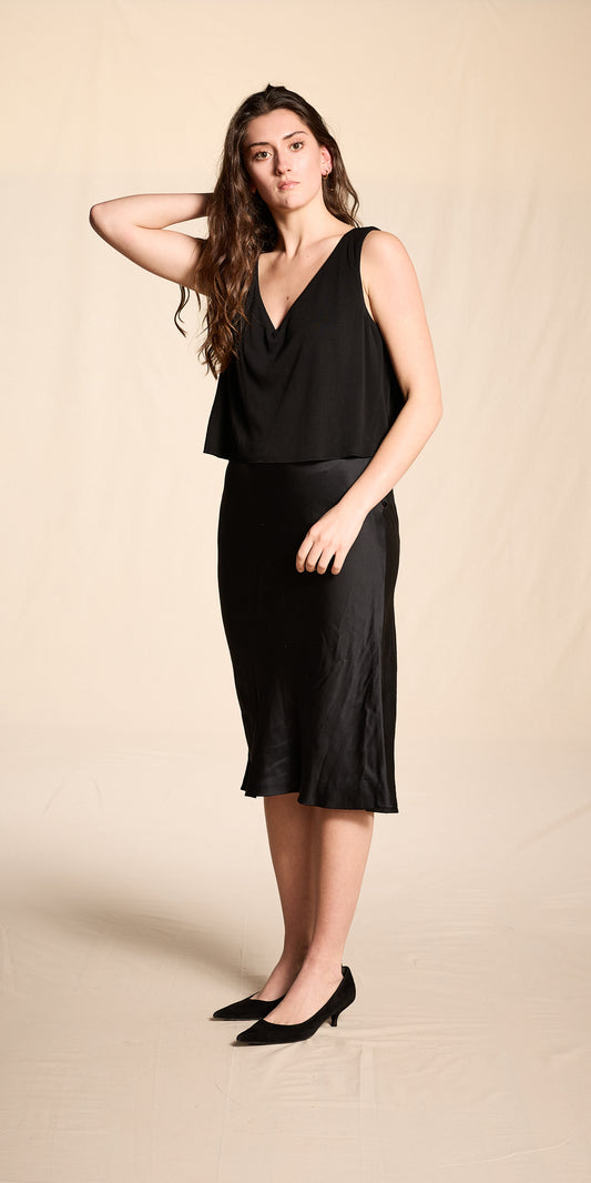 Bill Blass 1990s Black Silk Hand-Finished Bias Cut Skirt