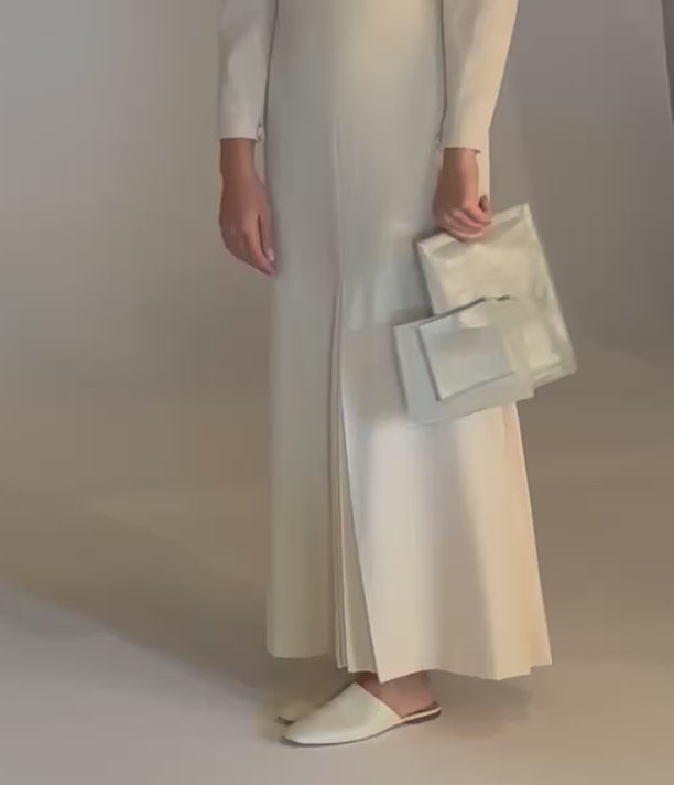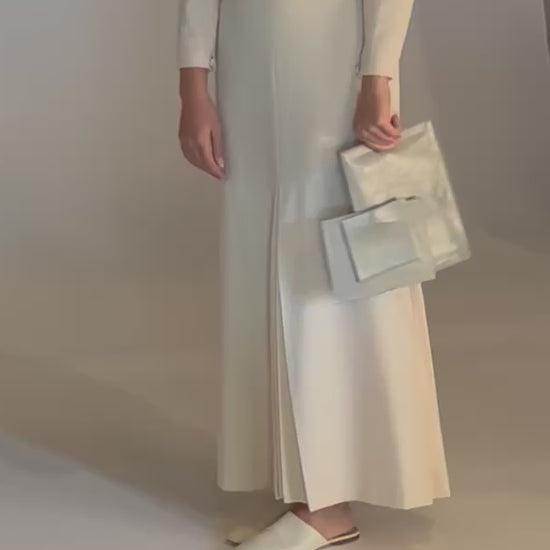 La Bagagerie 1980s dove gray leather rectangular clutch with moving pieces (see video).